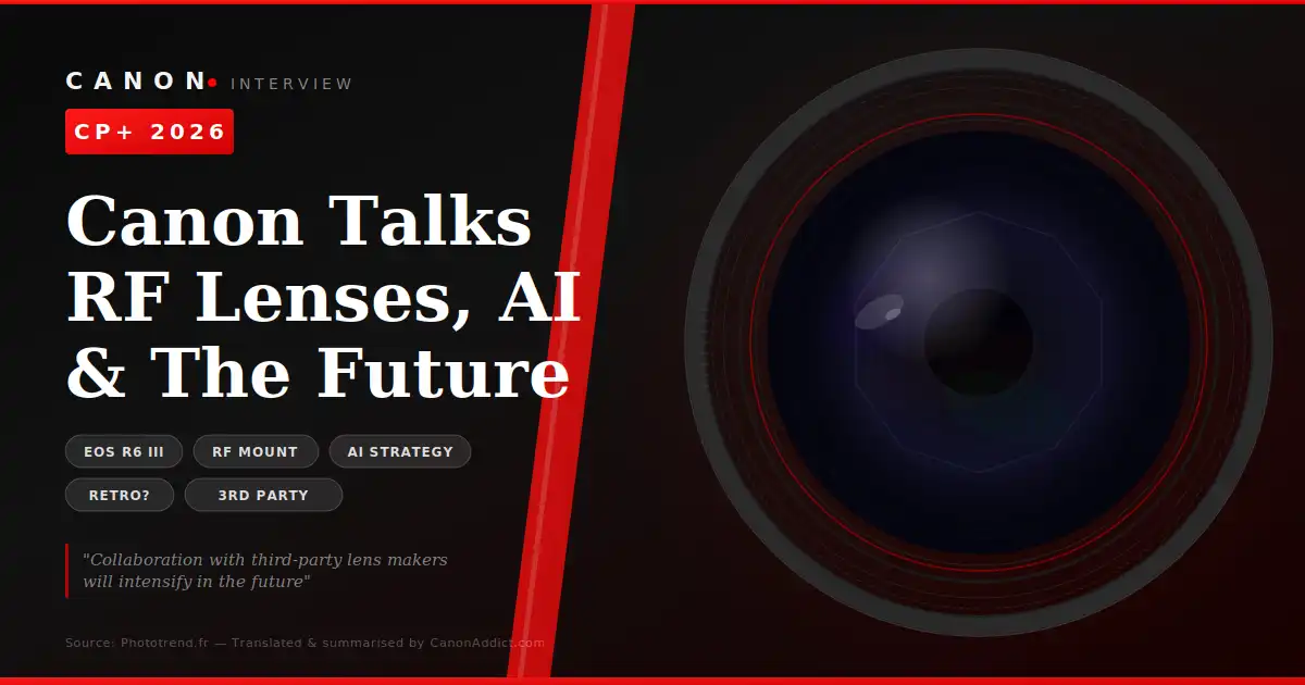 - Full-Frame RF Under Consideration: Nishimura could not disclose specific plans for full-frame RF lenses but acknowledged strong demand and confirmed Tamron is studying the feasibility of new projects.