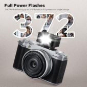 - [Full Power Flashes]Zeniko ZF04 mini camera flash Built in 125mAh lithium battery, 0.1-2.5s return time, full power flash speed can reach 372 times or more. With its automatic sleep mode ,it powers off after 30 minutes of inactivity to conserve energy.